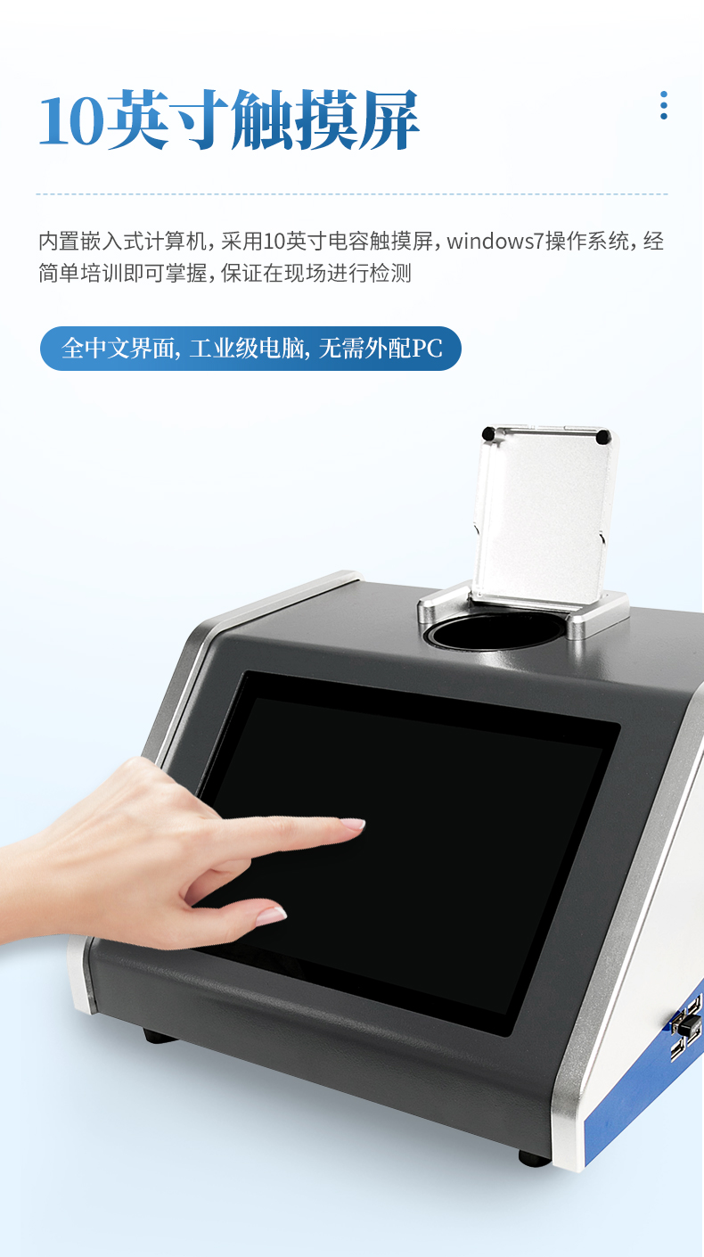 9、操作方便:采用10寸電容觸摸屏,windows7操作系統(tǒng),經(jīng)簡單培訓(xùn)即可掌握