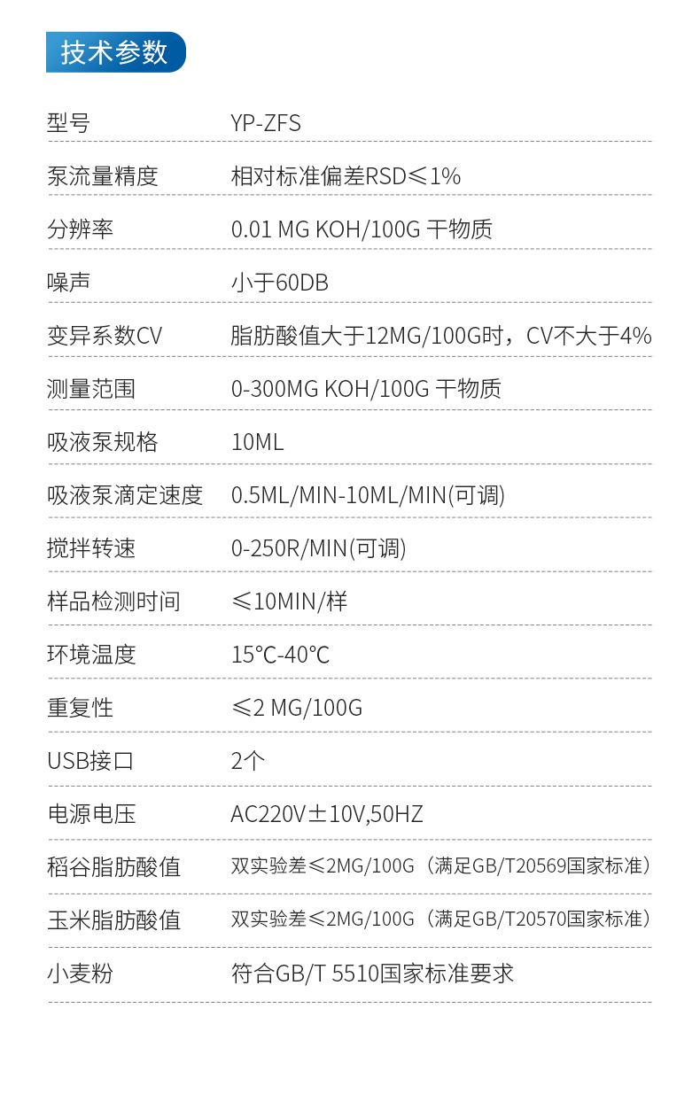 全自動(dòng)脂肪酸值測(cè)定儀是針對(duì)脂肪酸值作為判斷儲(chǔ)糧品質(zhì)劣變的重要儀器設(shè)備,是一種以電極電位突躍作為指示終點(diǎn)為控制依據(jù)的自動(dòng)滴定裝置。主要用于測(cè)定稻谷、糙米、大米等糧食作物的脂肪酸值,是一種專用檢測(cè)設(shè)備。本儀器實(shí)現(xiàn)了滴定終點(diǎn)判定、計(jì)量、數(shù)據(jù)處理、測(cè)定結(jié)果顯示及打印功能自動(dòng)化,提高了檢測(cè)結(jié)果的客觀性及準(zhǔn)確性,具有操作簡(jiǎn)單、使用方便的特點(diǎn)。