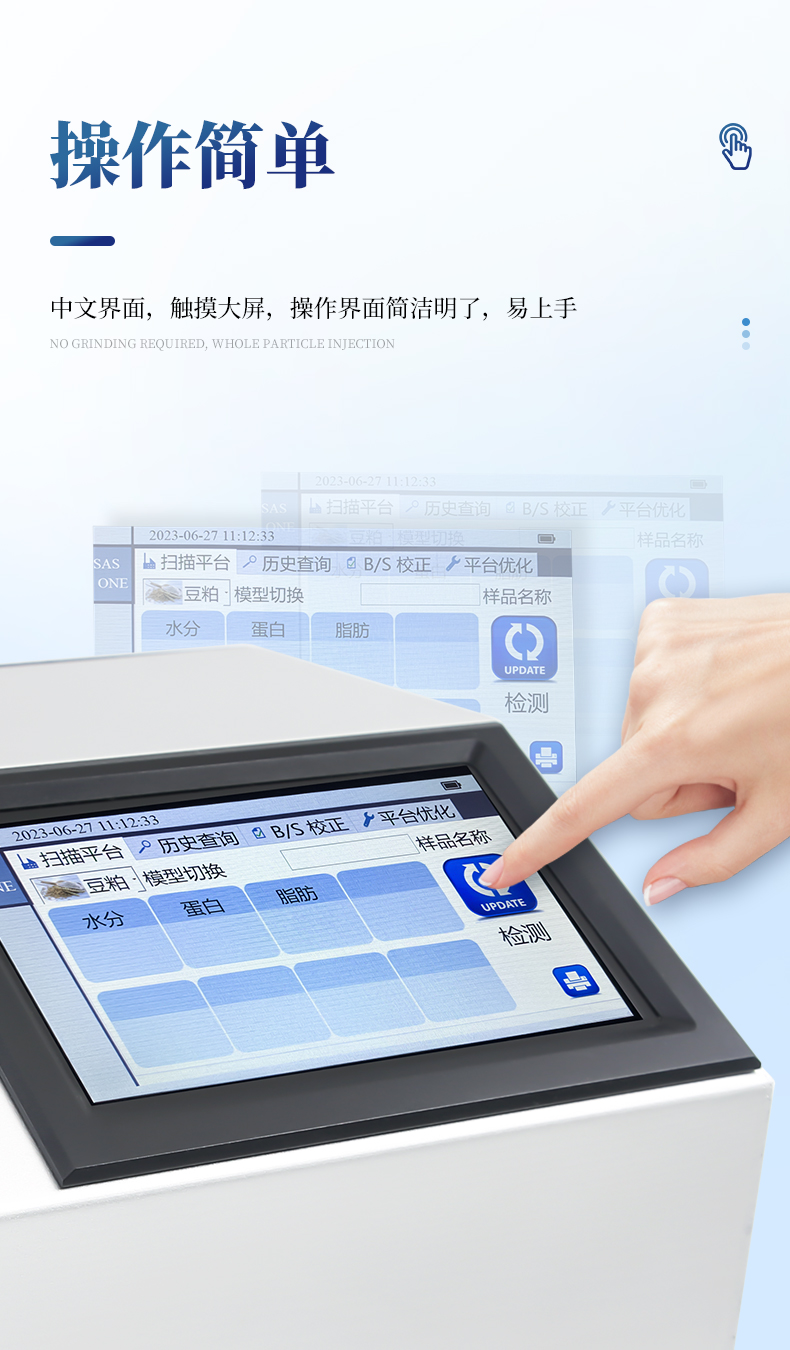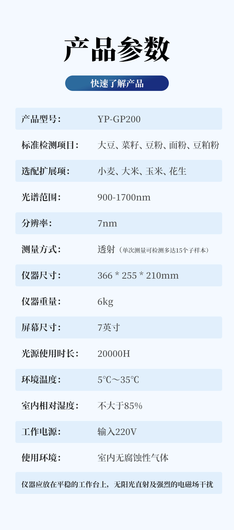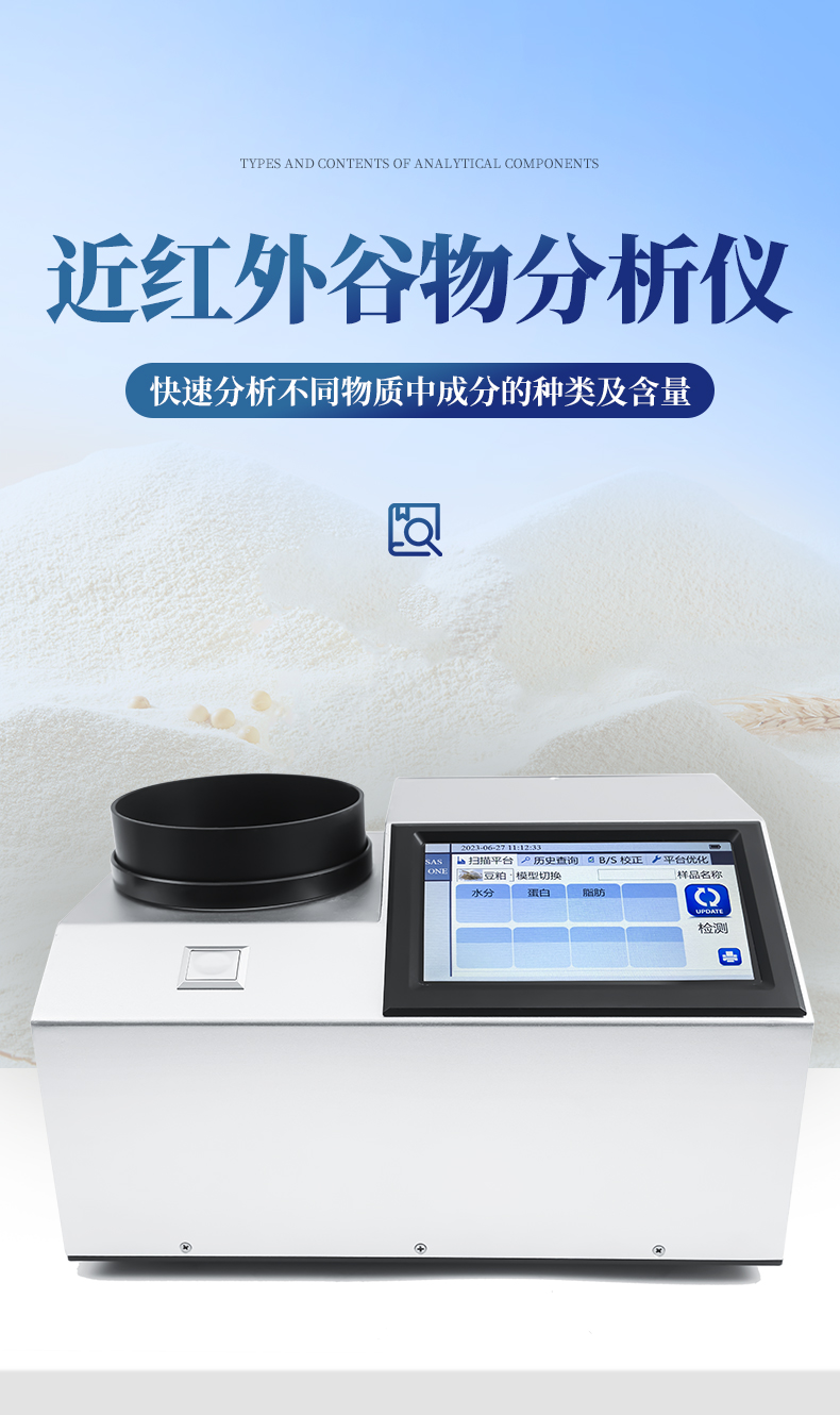 本儀器YP-GP200為近紅外光譜分析儀,可以根據(jù)近紅外光線照射樣品產(chǎn)生的光譜,快速分析不同物質(zhì)中成分的種類(如蛋白、水分、油脂、纖維、灰分等)及含量,并可根據(jù)客戶需求添加模型。