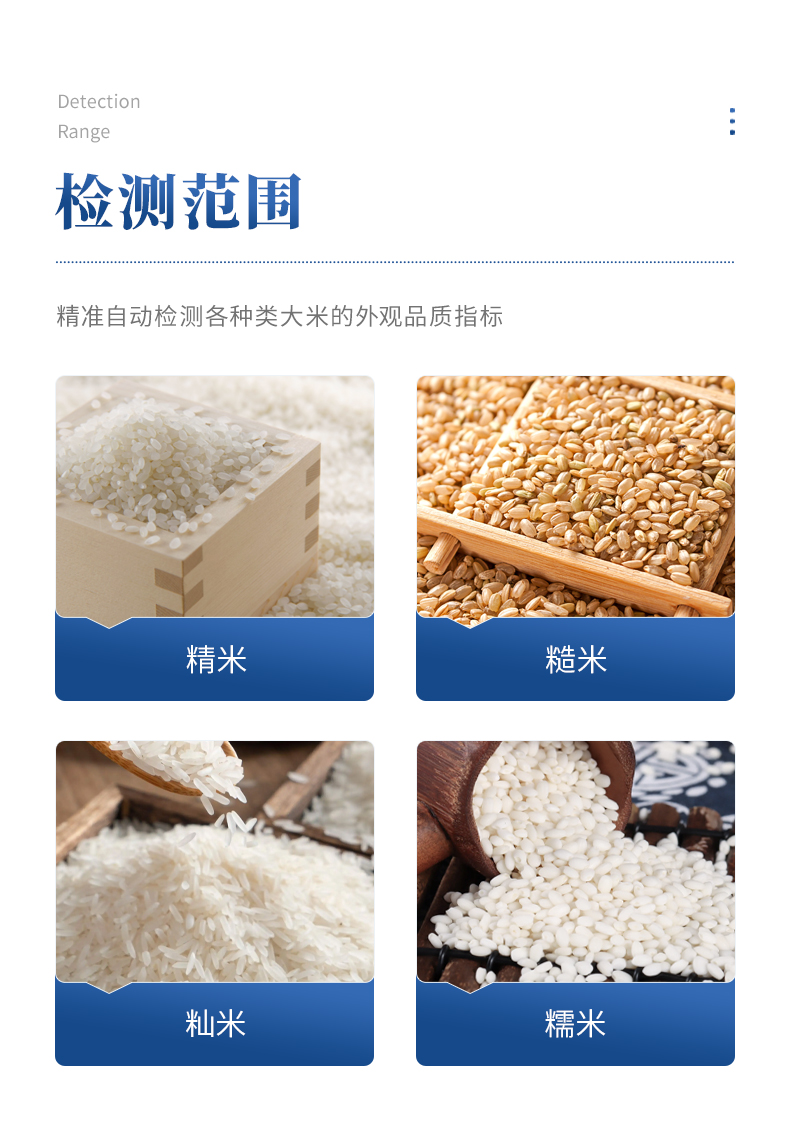 2、★可自動一次性測量分析30g以上大米樣品的:堊白度/率、碎米率及小碎米率、整精米數(shù)量、整精米率、可直接檢測大米透明度的國標等級、黃粒米、大米顏色黃度指數(shù)和大米白度測定、雜質(zhì)量、異品種粒、不完善粒(未成熟粒),及糯米的陰米率、病斑或黃變率。還可自動分析大米的裂紋率,糙米胚芽率。