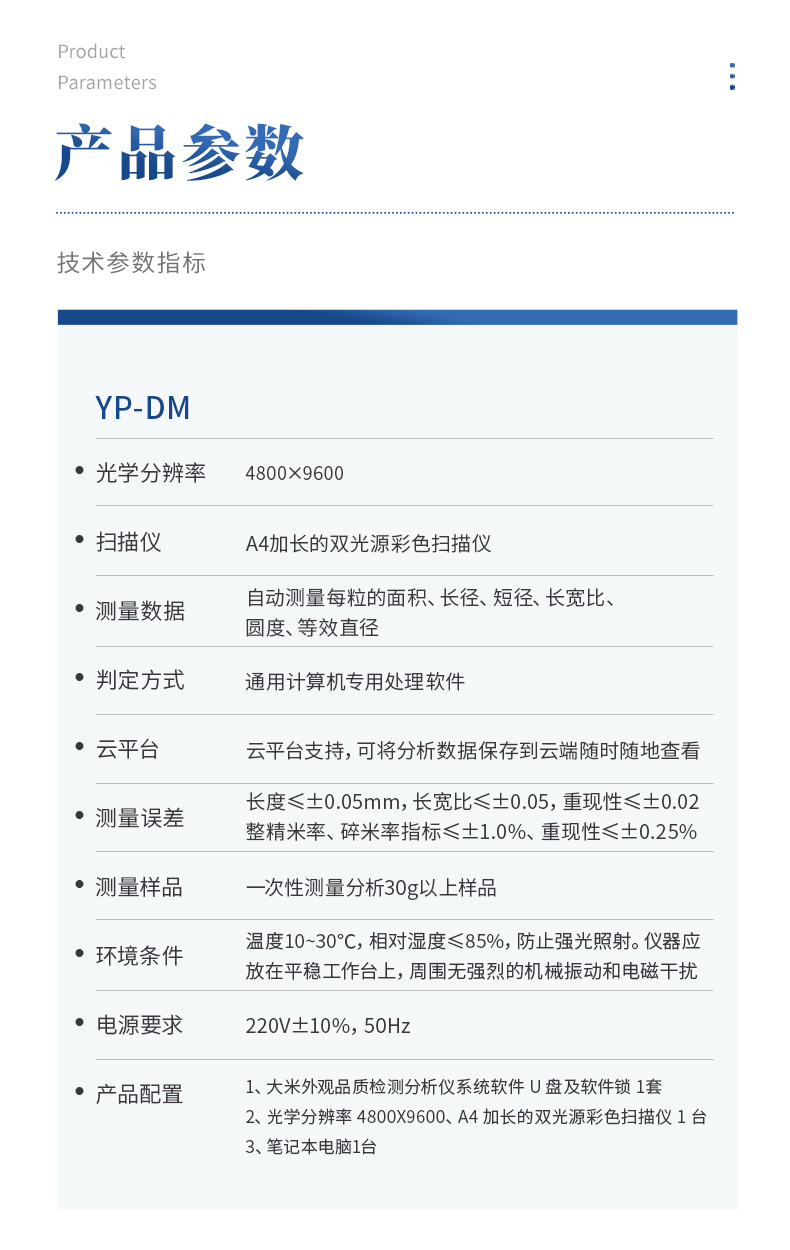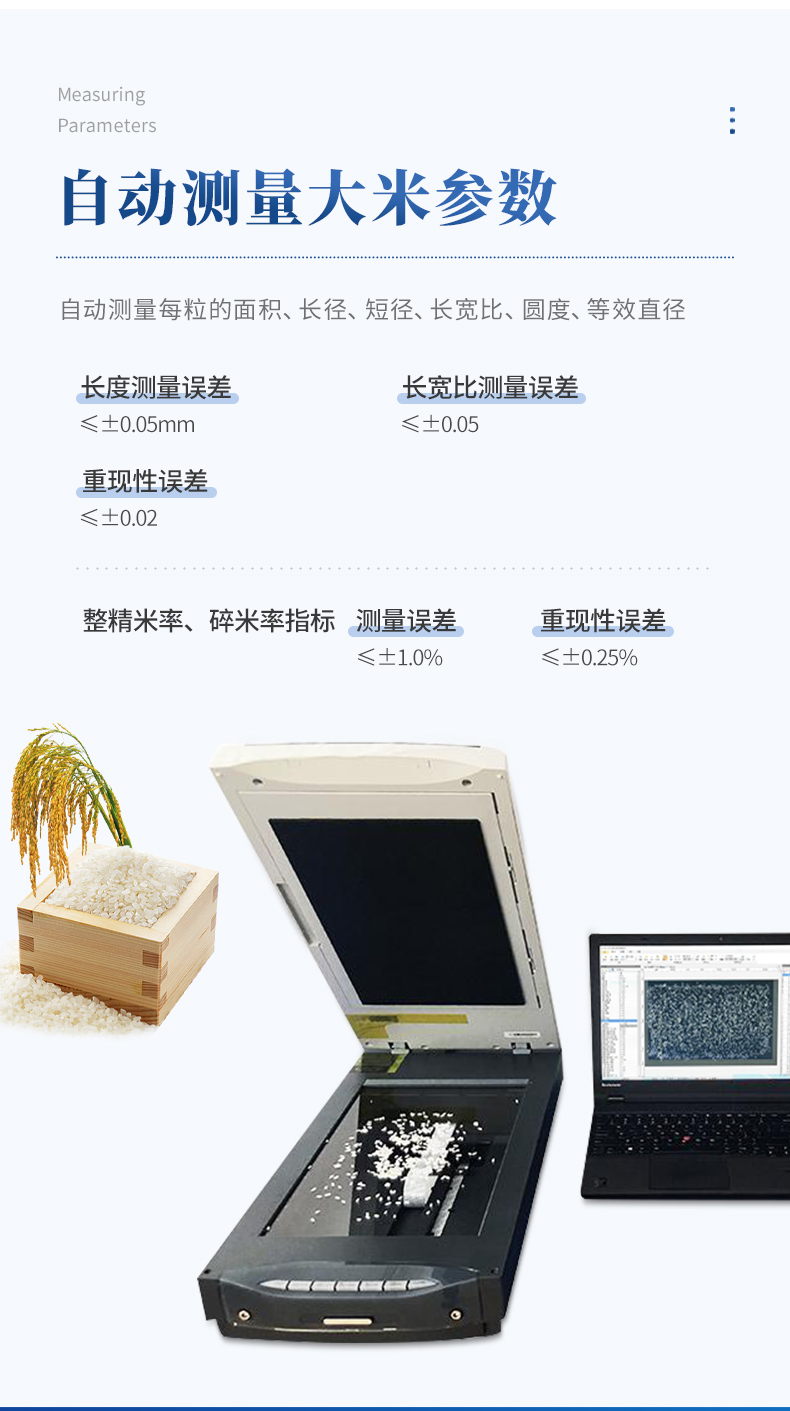 長度測量誤差≤±0.05mm,長寬比測量誤差≤±0.05,重現(xiàn)性誤差≤±0.02