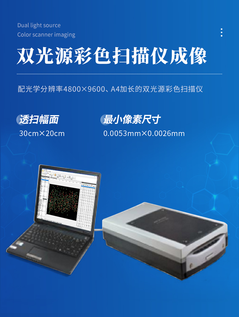 1、★配光學(xué)分辨率4800×9600、A4加長的雙光源彩色掃描儀來成像。透掃幅面30 cm×20 cm,最小像素尺寸0.0053mm×0.0026 mm。