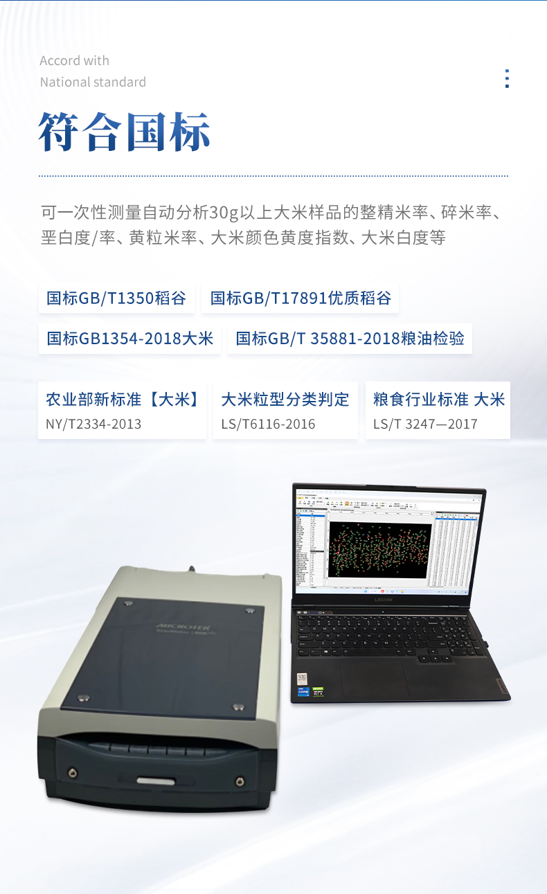 5、可大批量自動分析處理與輸出結(jié)果。與國標GB/T1350稻谷、GB/T17891優(yōu)質(zhì)稻谷或GB1354-2018大米、農(nóng)業(yè)部新標準【大米】NY/T2334-2013、大米粒型分類判定LS/T6116-2016、糧食行業(yè)標準大米LS/T 3247—2017、GB/T 35881-2018糧油檢驗稻谷黃粒米含量測定圖像分析法等標準相對應(yīng),檢測各項指標的質(zhì)量比和粒數(shù)比。