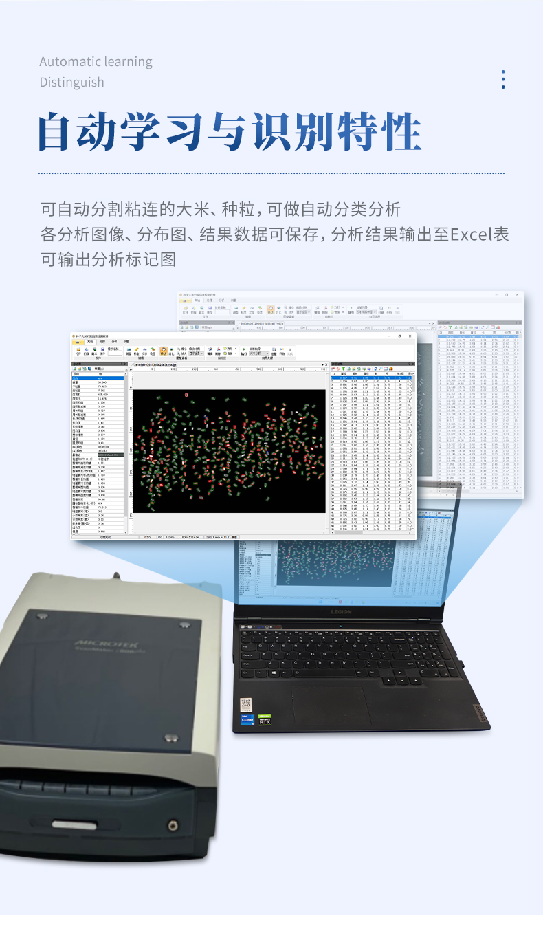 14、具有自動學(xué)習(xí)與識別特性,可自動分割粘連的大米、種粒,可做自動分類分析。