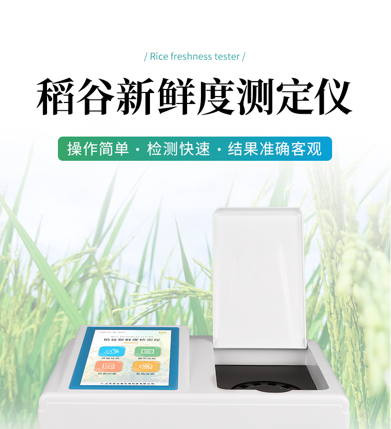 稻谷新鮮度測定儀適用于LS/T 6118—2017《糧油檢驗(yàn)稻谷新鮮度測定與判別》糧食行業(yè)標(biāo)準(zhǔn),是檢測稻谷新鮮程度的一款專用儀器。其工作原理是依據(jù)稻谷樣品在陳化過程中產(chǎn)生的醛酮類物質(zhì)的量,將待測稻谷碾制成大米,大米試樣加入專用試劑——測鮮劑后,振蕩混合并進(jìn)行離心處理,通過檢測樣品與測鮮劑混合反應(yīng)后混合溶液的顏色變化,經(jīng)儀器檢測后顯示樣品的新鮮度值來判斷該稻谷樣品的新鮮程度。該儀器主要應(yīng)用于糧庫、大米加工企業(yè)、糧食質(zhì)檢中心等對稻谷新鮮程度的評價(jià)。