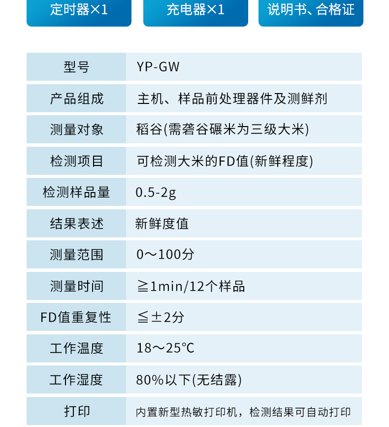 3、檢測項(xiàng)目:可檢測大米的FD值(新鮮程度);